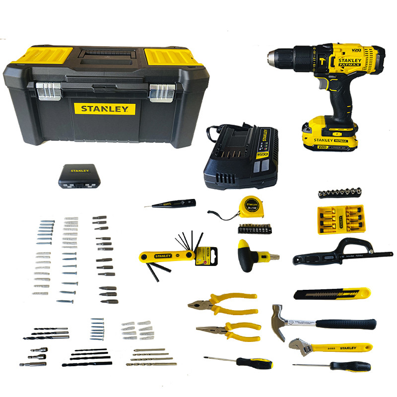 COMBO BARRENO PERCUTOR CON 119 ACCESORIOS, 1/2 PULG, MALETA PLASTICA, INALAMBRICO.
