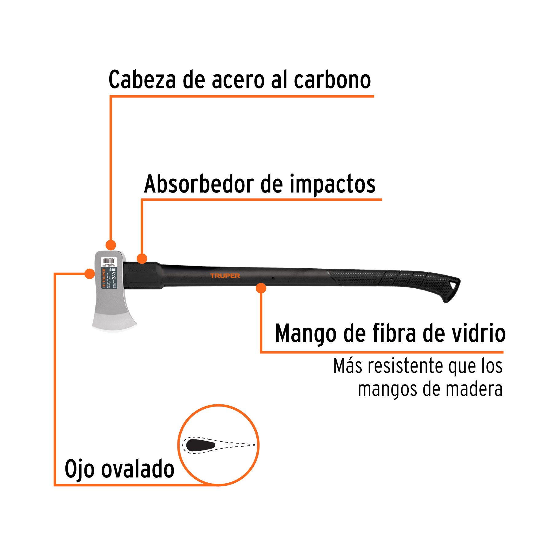 Hacha Michigan 3-1/2 lb, mango fibra de vidrio 34″, Truper
