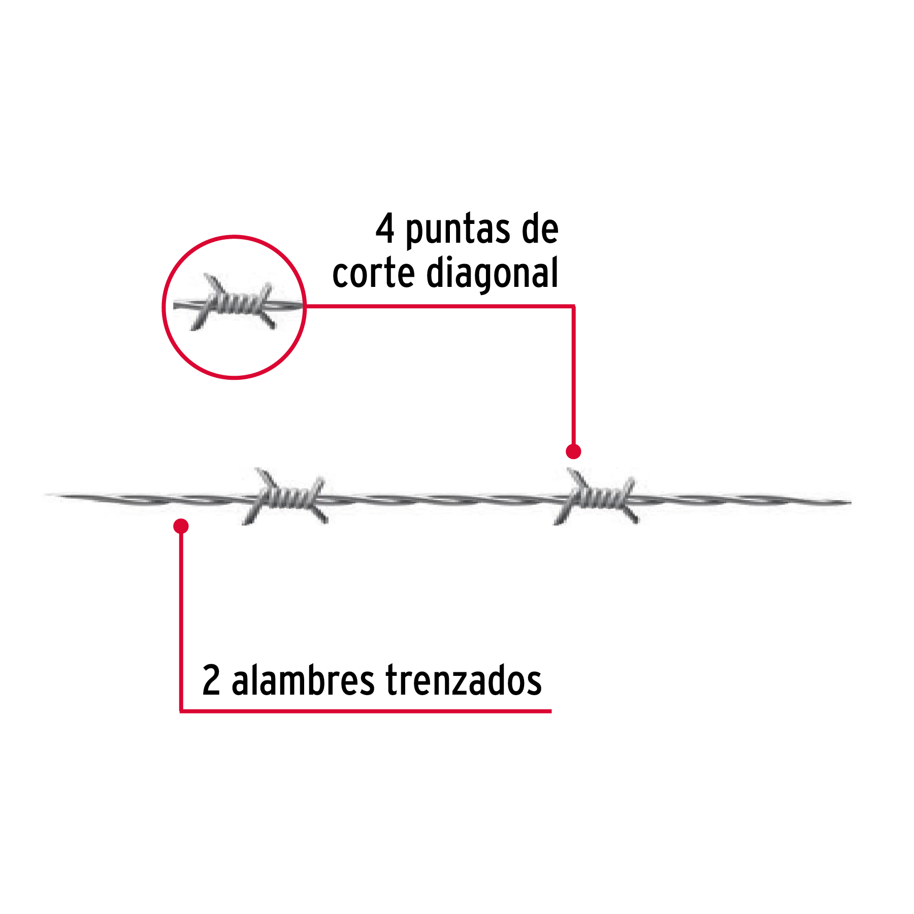 2 Alambres trenzados con púas de 4 puntas de corte diagonal